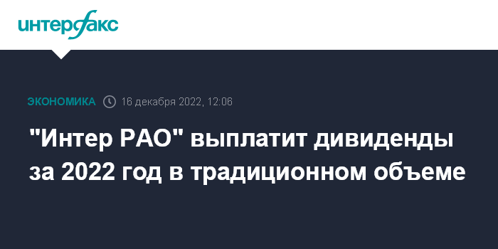 "Интер РАО" выплатит дивиденды за 2022 год в традиционном объеме