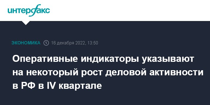 Москва. 16 декабря. INTERFAX.RU - Оперативные индикаторы указывают на незначительный рост деловой активности в РФ в IV квартале, несмотря на сложные внешние условия, говорится в сообщении ЦБ, опубликованном по итогам заседания совета директоров, на котором он сохранил ключевую ставку на уровне 7,5%.