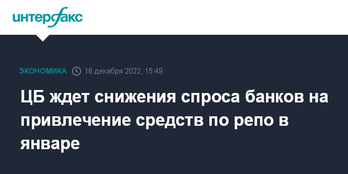 ЦБ ждет снижения спроса банков на привлечение средств по репо в январе