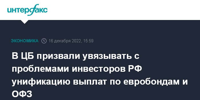 В ЦБ призвали увязывать с проблемами инвесторов РФ унификацию выплат по евробондам и ОФЗ