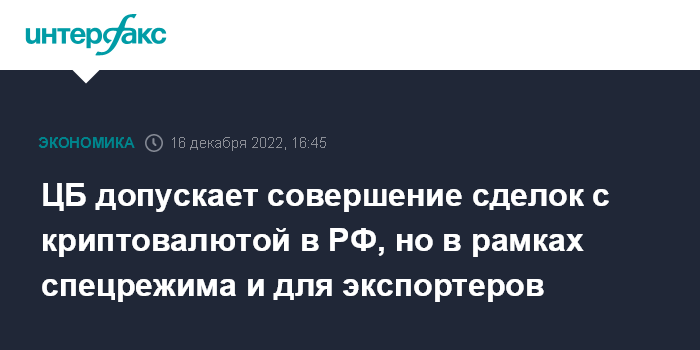 ЦБ допускает совершение сделок с криптовалютой в РФ, но в рамках спецрежима и для экспортеров