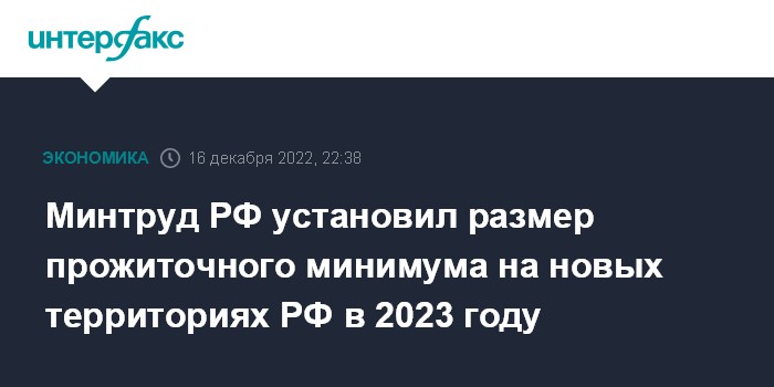 Минтруд РФ установил размер прожиточного минимума на новых территориях РФ в 2023 году