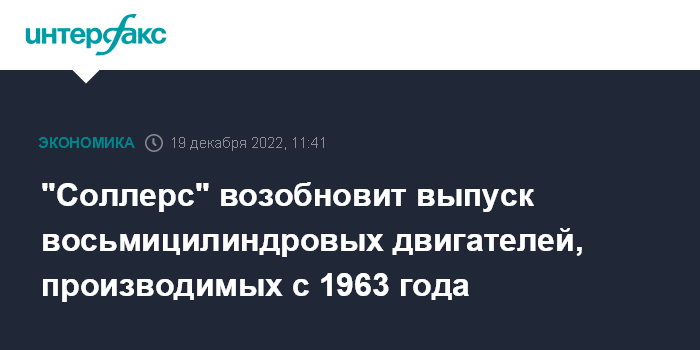 "Соллерс" возобновит выпуск восьмицилиндровых двигателей, производимых с 1963 года