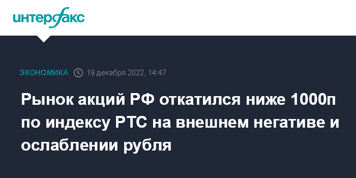 Рынок акций РФ откатился ниже 1000п по индексу РТС на внешнем негативе и ослаблении рубля