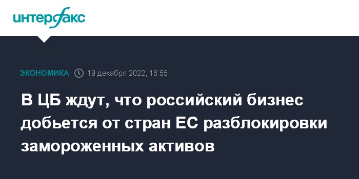 В ЦБ ждут, что российский бизнес добьется от стран ЕС разблокировки замороженных активов