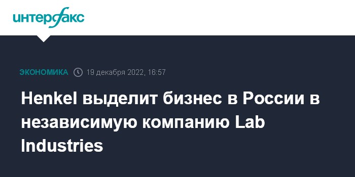 Москва. 19 декабря. INTERFAX.RU - Германская Henkel AG выделила свой бизнес в России и с 1 января он будет работать независимо под названием Lab Industries, сообщает Dow Jones.