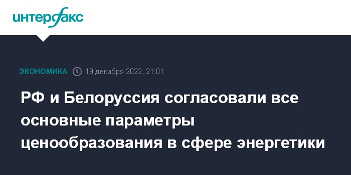 Москва. 19 декабря. INTERFAX.RU - Россия и Белоруссия согласовали основные параметры ценообразования в сфере энергетики, заявил президент РФ Владимир Путин по итогам российско-белорусских переговоров.