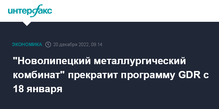 "Новолипецкий металлургический комбинат" прекратит программу GDR с 18 января