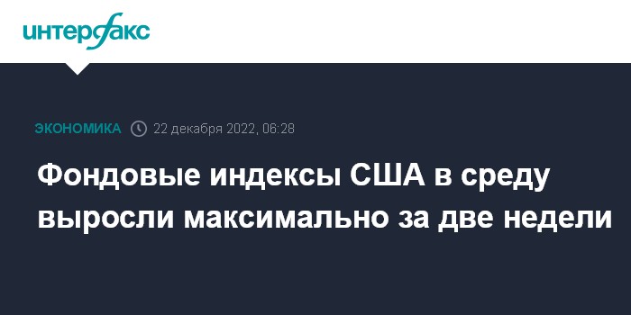 Москва. 22 декабря. INTERFAX.RU - Американский рынок акций завершил торги среды максимальным ростом за последние две недели после выхода данных о подъеме потребительского доверия и сильных отчетностей компаний.
