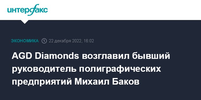 AGD Diamonds возглавил бывший руководитель полиграфических предприятий Михаил Баков