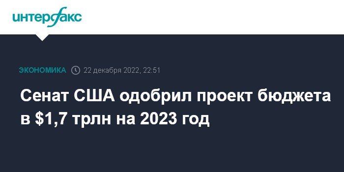 Москва. 22 декабря. INTERFAX.RU - Сенат США в четверг проголосовал за проект бюджета на 2023 год на сумму $1,7 трлн, который включает в себя очередную помощь Киеву в размере около $45 млрд, сообщает NBC News.