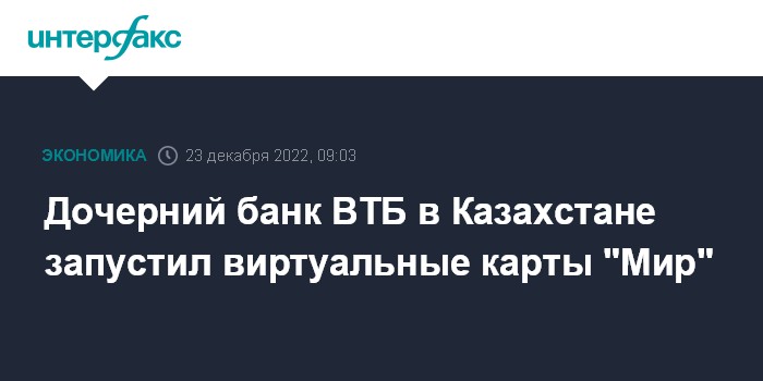 Дочерний банк ВТБ в Казахстане запустил виртуальные карты "Мир"