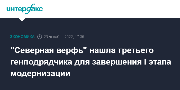 "Северная верфь" нашла третьего генподрядчика для завершения I этапа модернизации