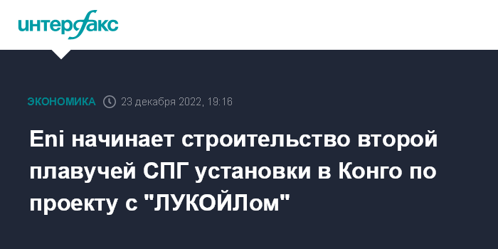 Eni начинает строительство второй плавучей СПГ установки в Конго по проекту с "ЛУКОЙЛом"
