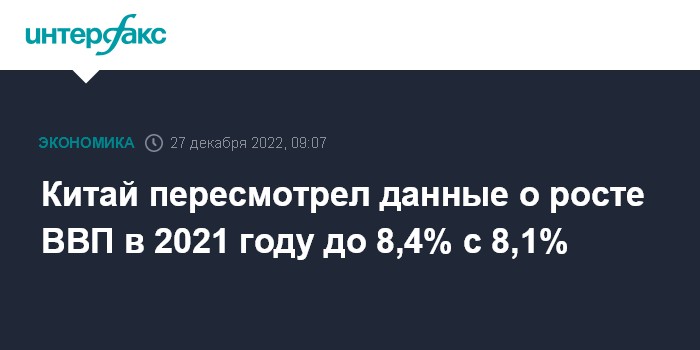 Китай пересмотрел данные о росте ВВП в 2021 году до 8,4% с 8,1%