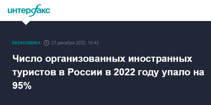 Число организованных иностранных туристов в России в 2022 году упало на 95%