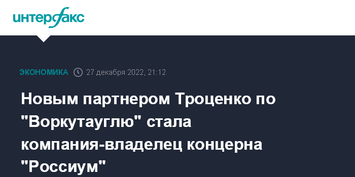 Москва. 27 декабря. INTERFAX.RU - Роман Троценко привлек нового партнера в "Воркутауголь", приобретенный у "Северстали" весной этого года.