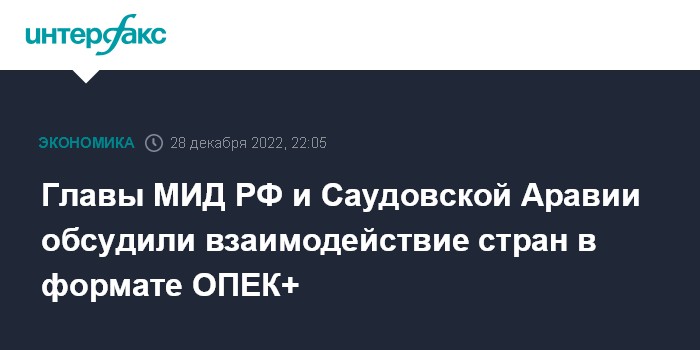 Главы МИД РФ и Саудовской Аравии обсудили взаимодействие стран в формате ОПЕК+