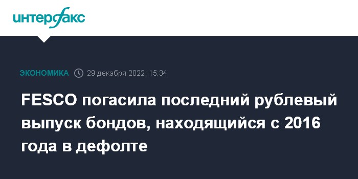 FESCO погасила последний рублевый выпуск бондов, находящийся с 2016 года в дефолте