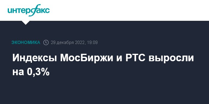 Москва. 29 декабря. INTERFAX.RU - Российский рынок акций в четверг подрос по индексам при смешанной динамике blue chips на фоне разнополярных сигналов с внешних площадок в условиях опасений относительно мировой рецессии и роста заболеваемости COVID-19 в Китае.