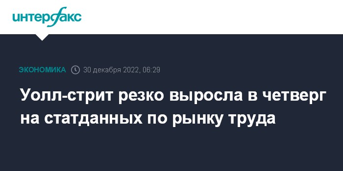 Уолл-стрит резко выросла в четверг на статданных по рынку труда