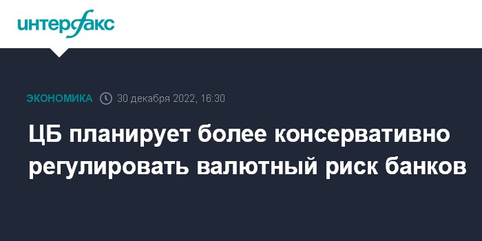 Москва. 30 декабря. INTERFAX.RU - Банк России подготовил проект изменений, устанавливающий более консервативное регулирование валютного риска, соответствующий документ опубликован на сайте ЦБ.