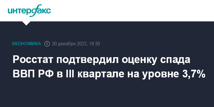 Таким образом, Росстат подтвердил предыдущую оценку снижения ВВП в III квартале на уровне 3,7%, сделанную производственным методом.