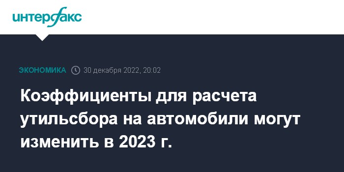 Москва. 30 декабря. INTERFAX.RU - Коэффициенты для расчета утильсбора на автомобили в России могут быть скорректированы в I квартале 2023 года, следует из опубликованной в пятницу стратегии развития автопрома до 2035 года.