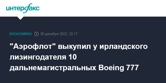 "Аэрофлот" выкупил у ирландского лизингодателя 10 дальнемагистральных Boeing 777