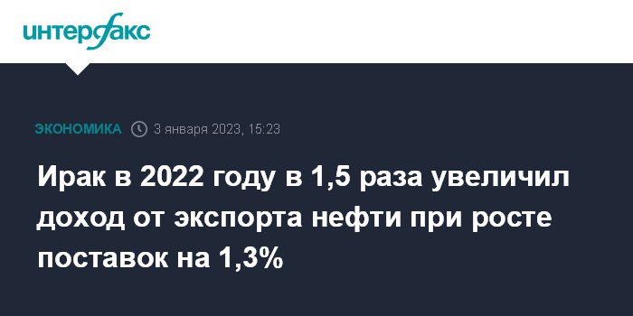 Ирак в 2022 году в 1,5 раза увеличил доход от экспорта нефти при росте поставок на 1,3%