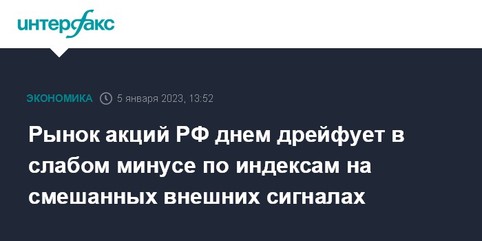 Рынок акций РФ днем дрейфует в слабом минусе по индексам на смешанных внешних сигналах