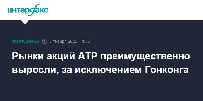 Москва. 6 января. INTERFAX.RU - Фондовые индексы Азиатско-Тихоокеанского региона (АТР) преимущественно выросли в пятницу вслед за американским фондовым рынком, исключение составил гонконгский индикатор.