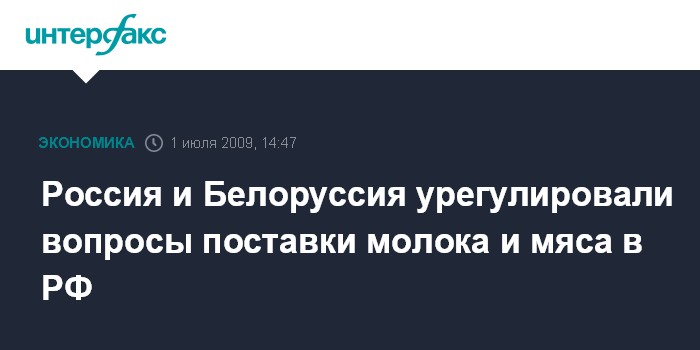 Москва. 1 июля. INTERFAX.RU - Россия и Белоруссия урегулировали вопросы, связанные с поставками в РФ белорусской животноводческой продукции.