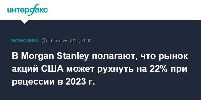 В Morgan Stanley полагают, что рынок акций США может рухнуть на 22% при рецессии в 2023 г.