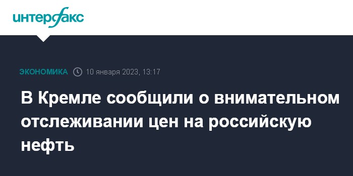 Москва. 10 января. INTERFAX.RU - В российском правительстве, в первую очередь вице-премьер Александр Новак и Министерство энергетики, внимательно отслеживают изменения цен на российскую нефть, заявил пресс-секретарь Владимира Путина Дмитрий Песков.