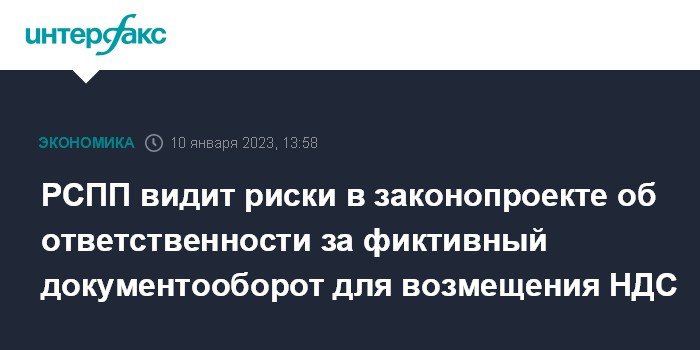 РСПП видит риски в законопроекте об ответственности за фиктивный документооборот для возмещения НДС