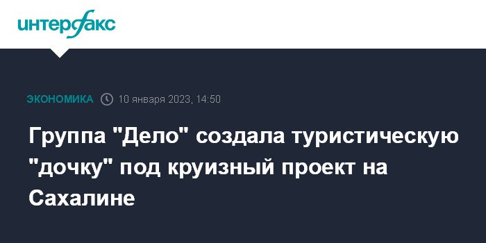 "Компания создана под возможные проекты в сфере круизного туризма, которые могут быть запущены в сотрудничестве с нашими партнерами из этой отрасли, а также администрацией Сахалинской области. Со своей стороны видим в этом направлении перспективу для расширения использования шиппинговых компетенций группы", - пояснили "Интерфаксу" в пресс-службе "Дела".