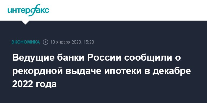 Ведущие банки России сообщили о рекордной выдаче ипотеки в декабре 2022 года