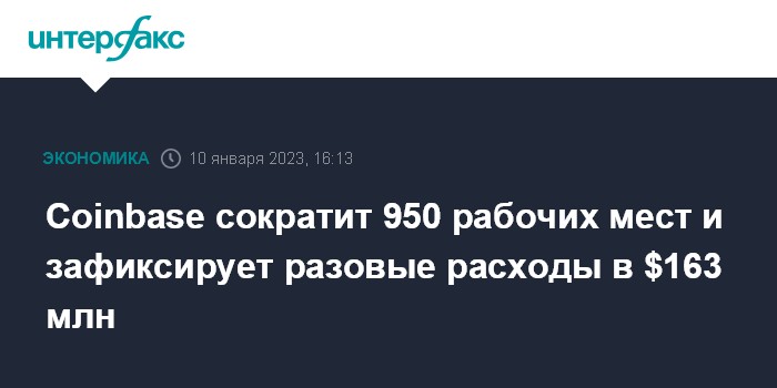 Coinbase сократит 950 рабочих мест и зафиксирует разовые расходы в $163 млн