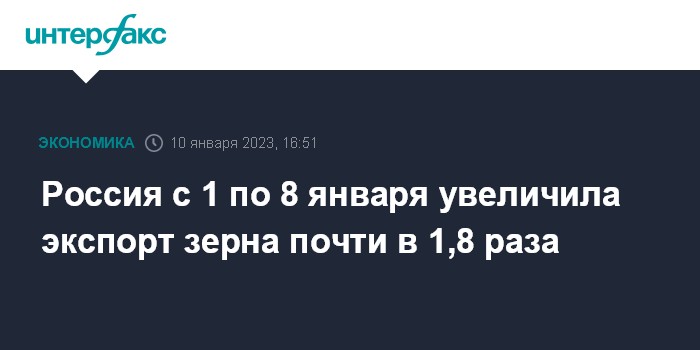 Россия с 1 по 8 января увеличила экспорт зерна почти в 1,8 раза