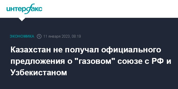 Москва. 11 января. INTERFAX.RU - Казахстан пока не получал официального предложения о создании "газового" союза с Россией и Узбекистаном, сообщил "Интерфаксу" премьер-министр Казахстана Алихан Смаилов.