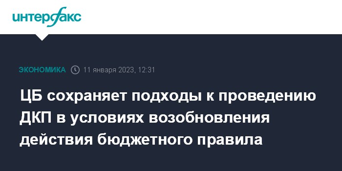 ЦБ сохраняет подходы к проведению ДКП в условиях возобновления действия бюджетного правила