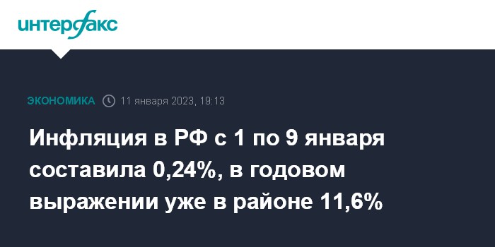 Инфляция в РФ с 1 по 9 января составила 0,24%, в годовом выражении уже в районе 11,6%