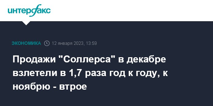 Продажи "Соллерса" в декабре взлетели в 1,7 раза год к году, к ноябрю - втрое