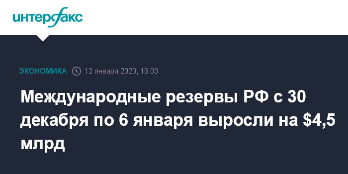 Международные резервы РФ с 30 декабря по 6 января выросли на $4,5 млрд