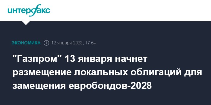 "Газпром" 13 января начнет размещение локальных облигаций для замещения евробондов-2028