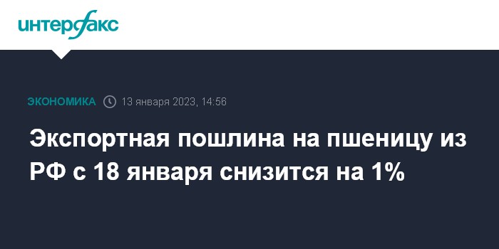 Экспортная пошлина на пшеницу из РФ с 18 января снизится на 1%
