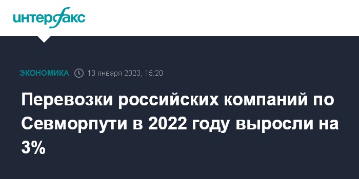 Перевозки российских компаний по Севморпути в 2022 году выросли на 3%