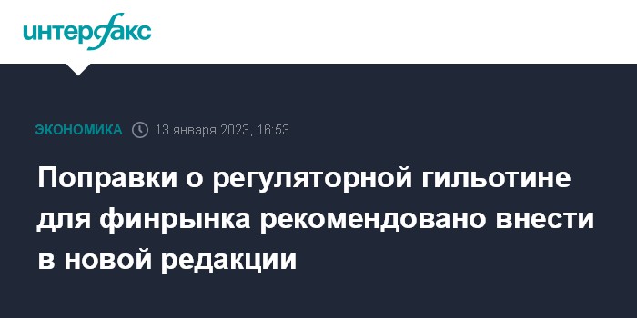 Поправки о регуляторной гильотине для финрынка рекомендовано внести в новой редакции