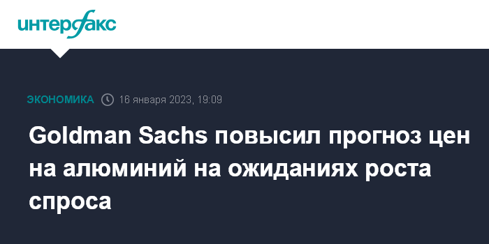 Москва. 16 января. INTERFAX.RU - Аналитики Goldman Sachs Group Inc. повысили прогнозы стоимости алюминия, отметив, что повышение спроса на металл в Европе и Китае может привести к его дефициту. Средняя цена алюминия в Лондоне в 2023 году составит $3125 за тонну, прогнозируют Николас Сноудон и Адити Рай. Их прогноз приводит Bloomberg.